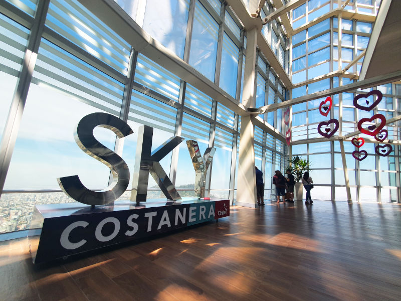 • Sky Costanera se ubica en los pisos 61 y 62 de la Gran Torre Santiago (300 metros de altura). • El ascensor panorámico sube en solo 60 segundos. • Vista 360° de toda la ciudad, la cordillera de los Andes y el valle central. • Ideal para fotos espectaculares de día y de noche. :